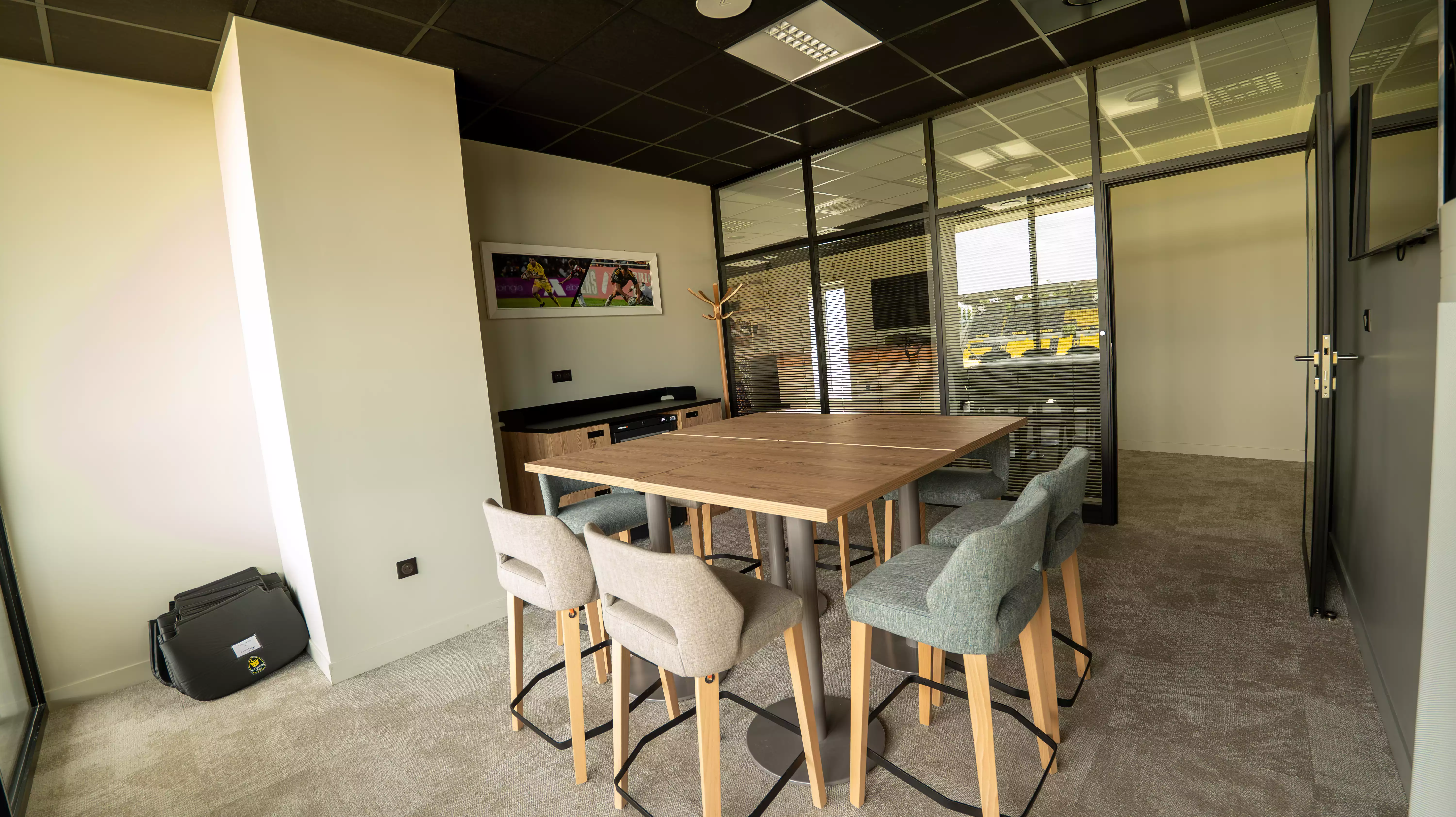 Nous avons imaginé et aménagé les nouvelles loges et l’espace de coworking du Stade Rabelais, avec l’ambition de créer des lieux modernes, chaleureux et pensés pour rassembler.