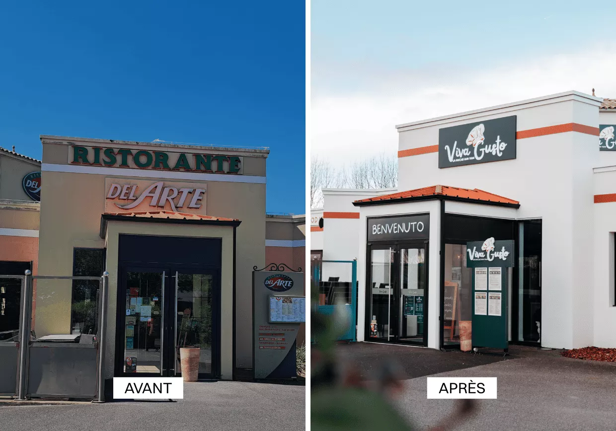 Implanté à La Roche-sur-Yon, dans l’ancien restaurant italien Dell’Arte, Viva Gusto incarne un nouveau souffle pour la restauration rapide italienne. Nous avons accompagné le projet dans sa globalité, en concevant et réalisant l’architecture intérieure et extérieure du lieu, afin de créer une identité forte, chaleureuse et immédiatement reconnaissable.