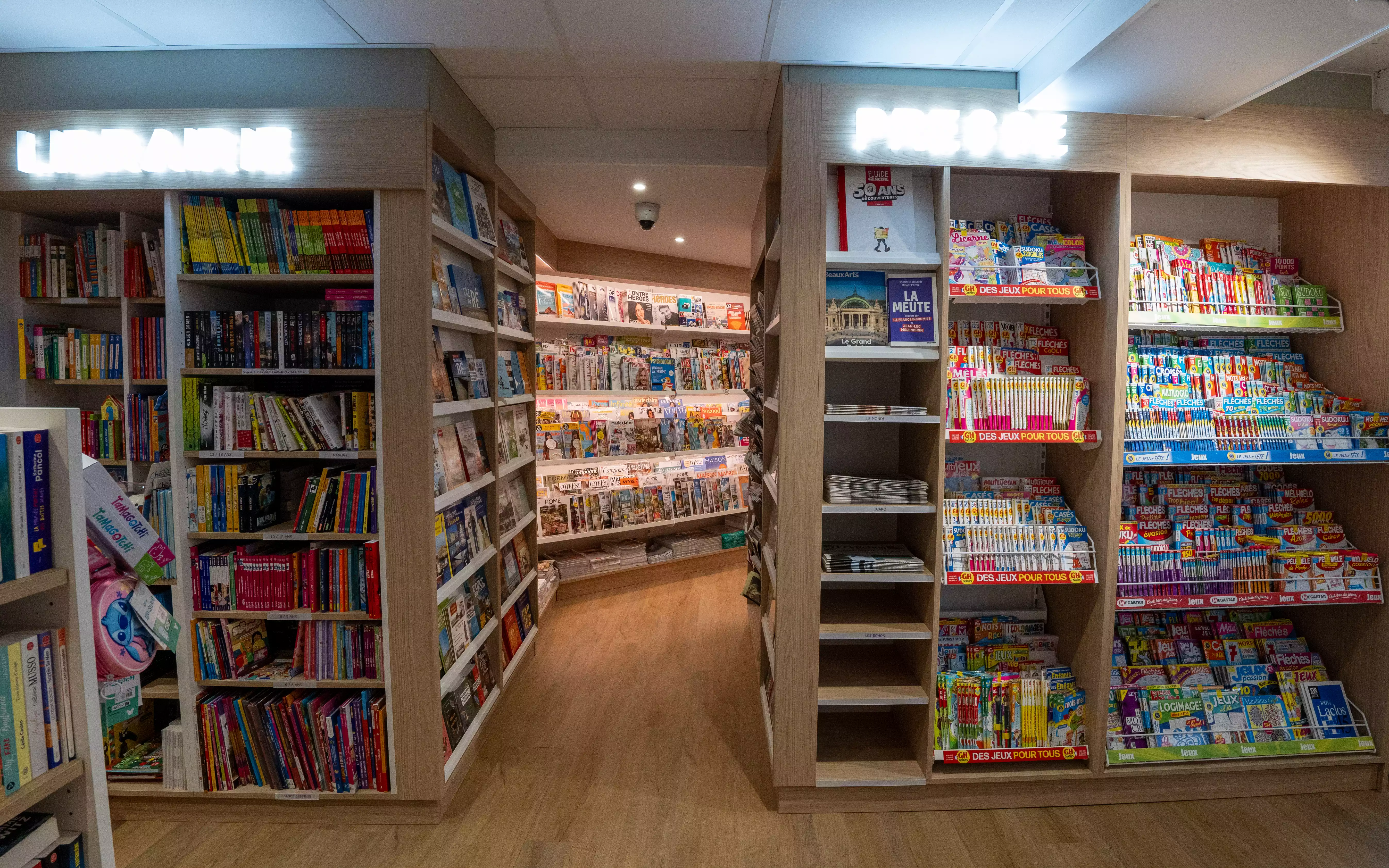 Nous avons totalement repensé le Tabac Presse des Portes afin de créer un lieu moderne et accueillant, où chaque espace – presse, librairie, souvenirs ou jeux – trouve naturellement sa place.