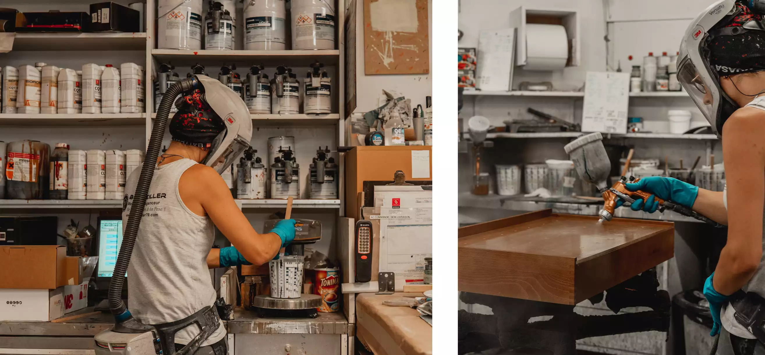 L’atelier de finition Bouteiller est un espace dédié à la mise en valeur des créations. Nos artisans appliquent des vernis, des laques, des patines et des finitions de haute qualité pour offrir à chaque pièce une esthétique parfaite. De plus, des techniques comme l’application de poudres d'étain, de laiton, ainsi que du béton ciré ou de la résine, sont utilisées pour des effets personnalisés. L’attention portée à chaque détail assure un rendu exceptionnel et durable, à la hauteur de vos attentes.